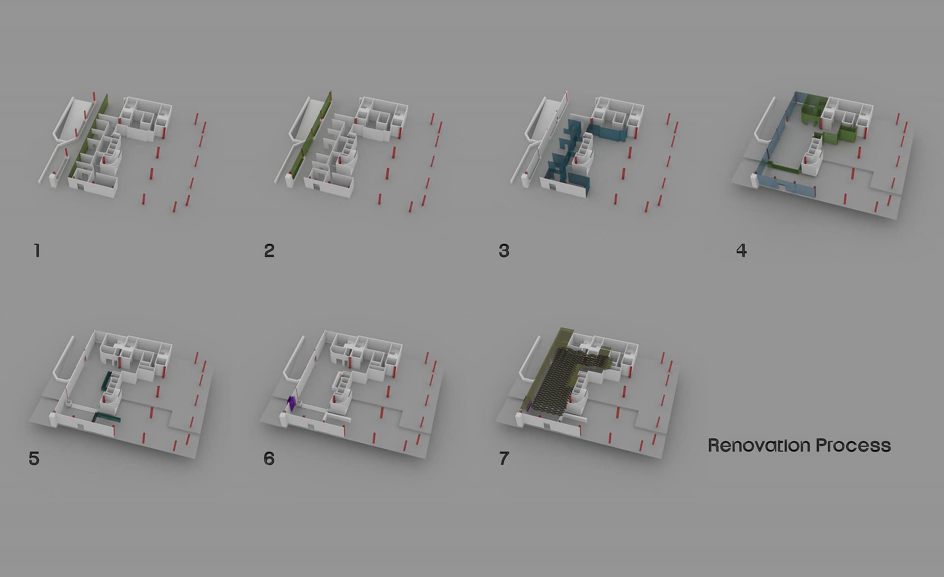 طراحی مقطعی و سقف فضا با بکارگیری فرم های لوزی شکل کشیده دارای هاله ی نور انتزاعی از موتیف های موجود در بنا میباشد. حفظ ارزش های کالبدی بنا، همچون پوسته ی شیشه ای، تاسیسات اتوبانک و پیوند محوطه ی طراحی با سایر عملکردهای همان طبقه و طبقات پیرامونی از تاکیدات اصلی این پروژه میباشد.